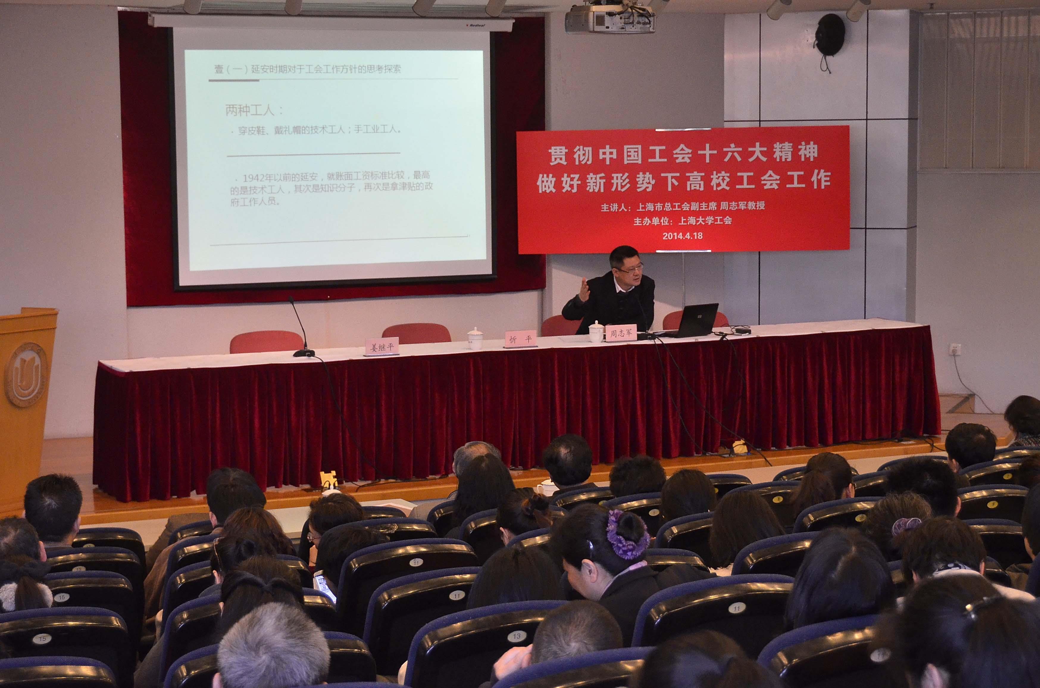 上海市总工会副主席周志军同志为我校工会干部及师生作精彩报告