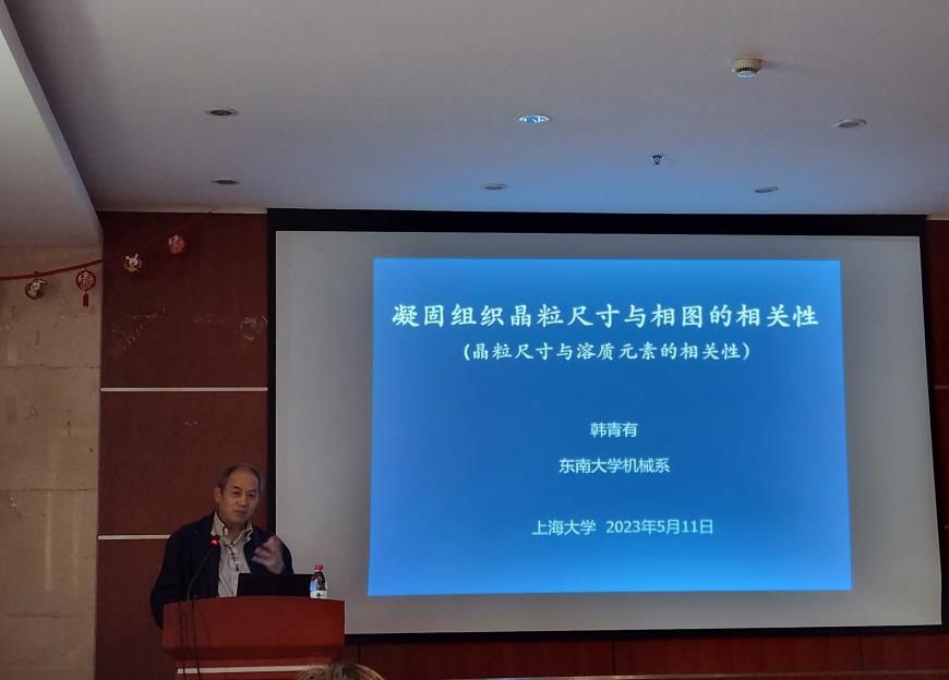 东南大学韩青有教授带给本次大讲堂“凝固晶粒尺寸与相图的相关性”的演讲。他从数据的选择、晶粒尺寸和成分的关系、晶粒尺寸和相图的关系、简单的2参模型、机理五个方面带来学术大餐。