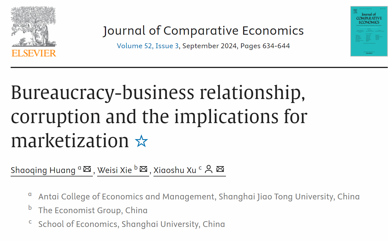 经济学院副教授徐晓书在比较经济学和制度经济学顶级期刊Journal of Comparative Economics上共同发表最新成果