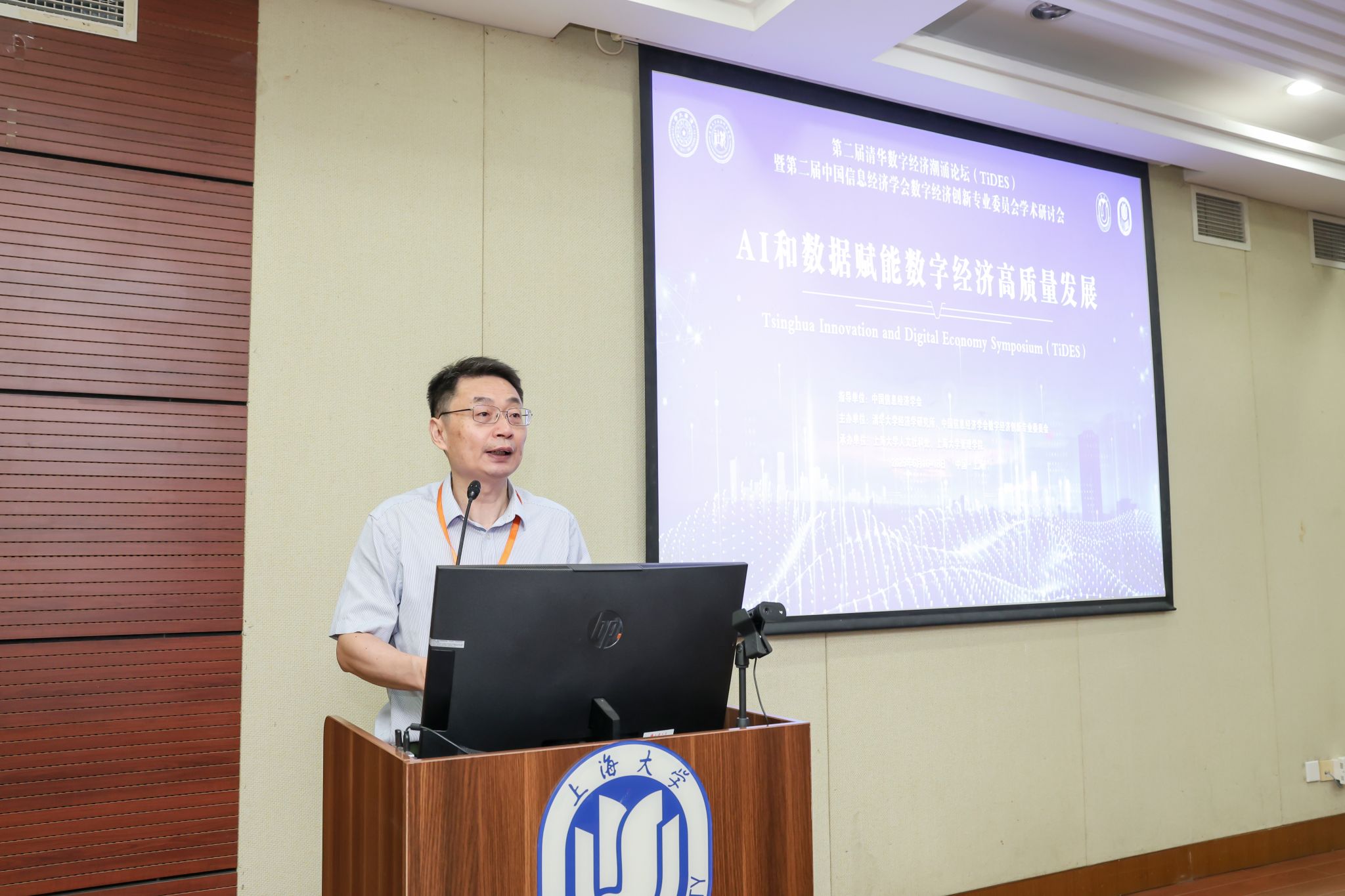 主旨报告(二)由Management Science副主编、上海财经大学特聘教授赵琳,Journal of Digital Economy创刊主编、清华大学长聘教授戎珂带来精彩分享,清华大学副教授、经济学研究所副所长李红军主持。赵琳教授在《数据产品市场化流通定价机制》报告中分享了数据要素的重要意义、索洛悖论、流通和市场化价值释放路径。戎珂教授以《数字经济:AI和数据》系统阐释了AI与数据双轮驱动下的经济范式变革,引发与会者对数字经济治理体系的深度思考。